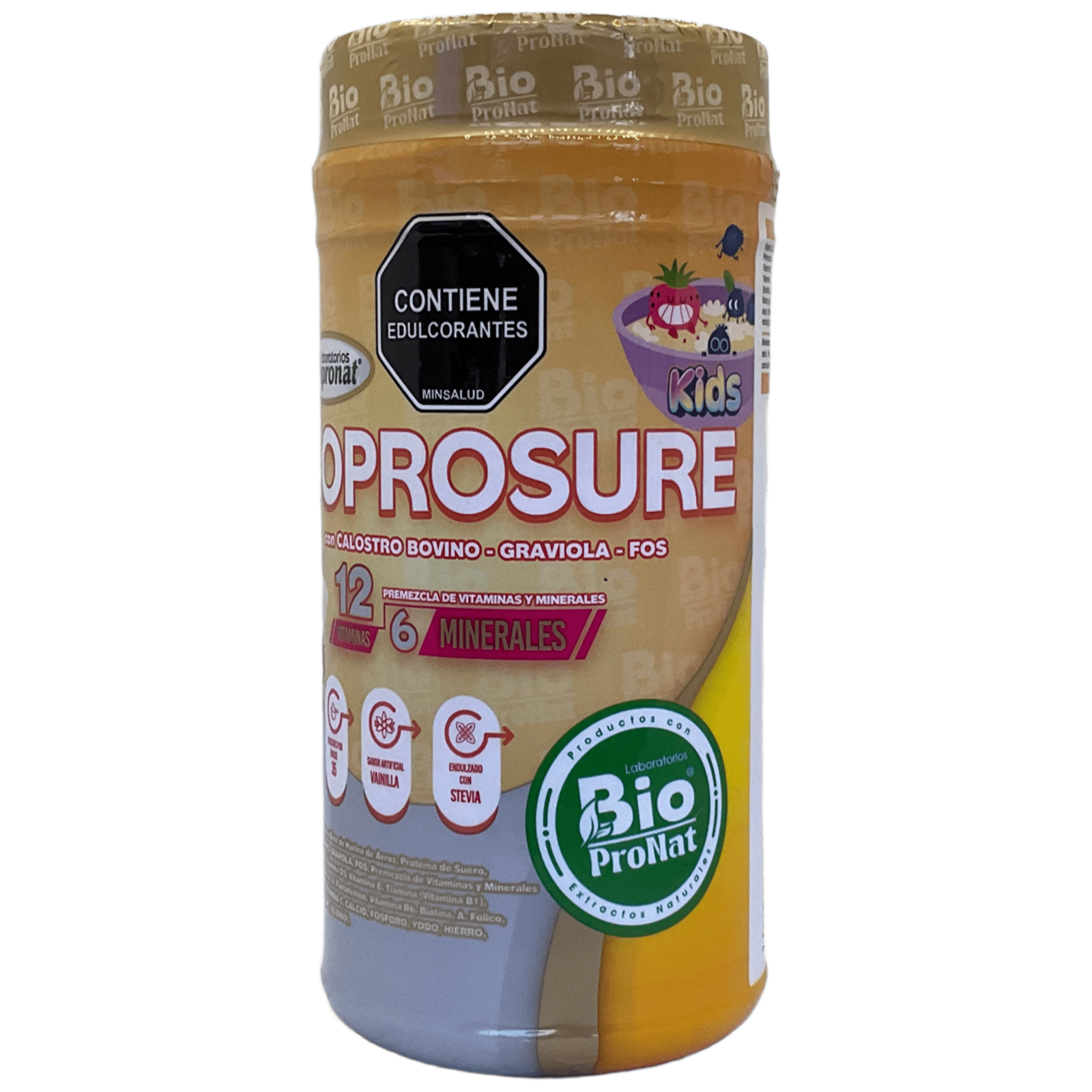 Bioprosure Kids es un alimento en polvo a base de harina de arrozproteína de suero concentradacalostro bovinograviola, y FOS. Está enriquecido con vitaminasminerales como calciohierromagnesiozinc y otros nutrientes esenciales. Se recomienda mezclar 1 cucharada (20 gramos) en lecheagua o jugo para un consumo fácil y rápido.